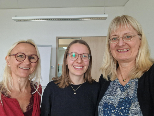 Foto: Hilke Schauland (mit Prof.in Dr.in Claudia Hellmers (links) und Charlotte Hüttenrauch)