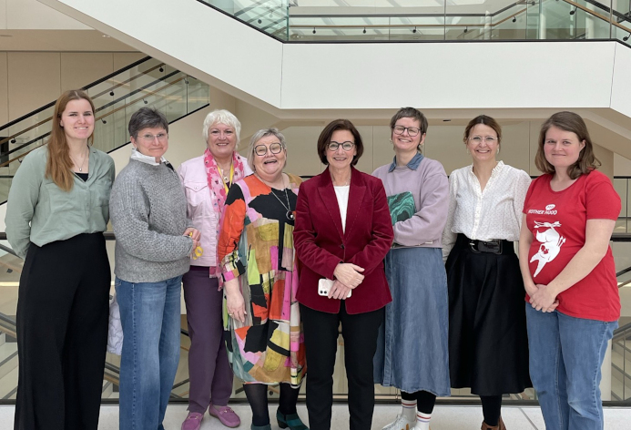 v.l.n.r.: Finnja Lindemann und Sabine Scholz – de Wall (Aktionsbüro Gesundheit rund um die Geburt Niedersachsen), Dr.in Barbara Hartung (Vorsitzende des Landesfrauenrates Niedersachsen e.V.), Eva Viehoff (Sprecherin für Gesundheit und Pflege Bündnis 90/ Die Grünen), Karin Emken (Frauenpolitische Sprecherin SPD), Susanne Huhndorf (2. Vorsitzende HVN), Dr.in Tanja Meyer (Frauenpolitische Sprecherin Bündnis 90/Die Grünen und Vizepräsidentin des Niedersächsischen Landtages),Kimberly Schumacher (Sprecherin Mother Hood e.V. Niedersachsen)